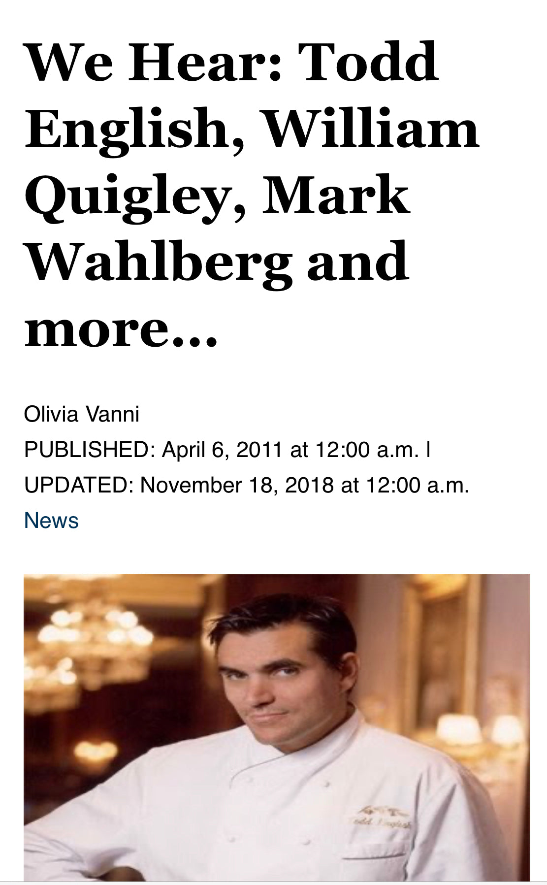 We Hear: Todd English, William Quigley, Mark Wahlberg and more…