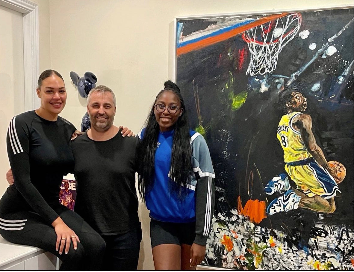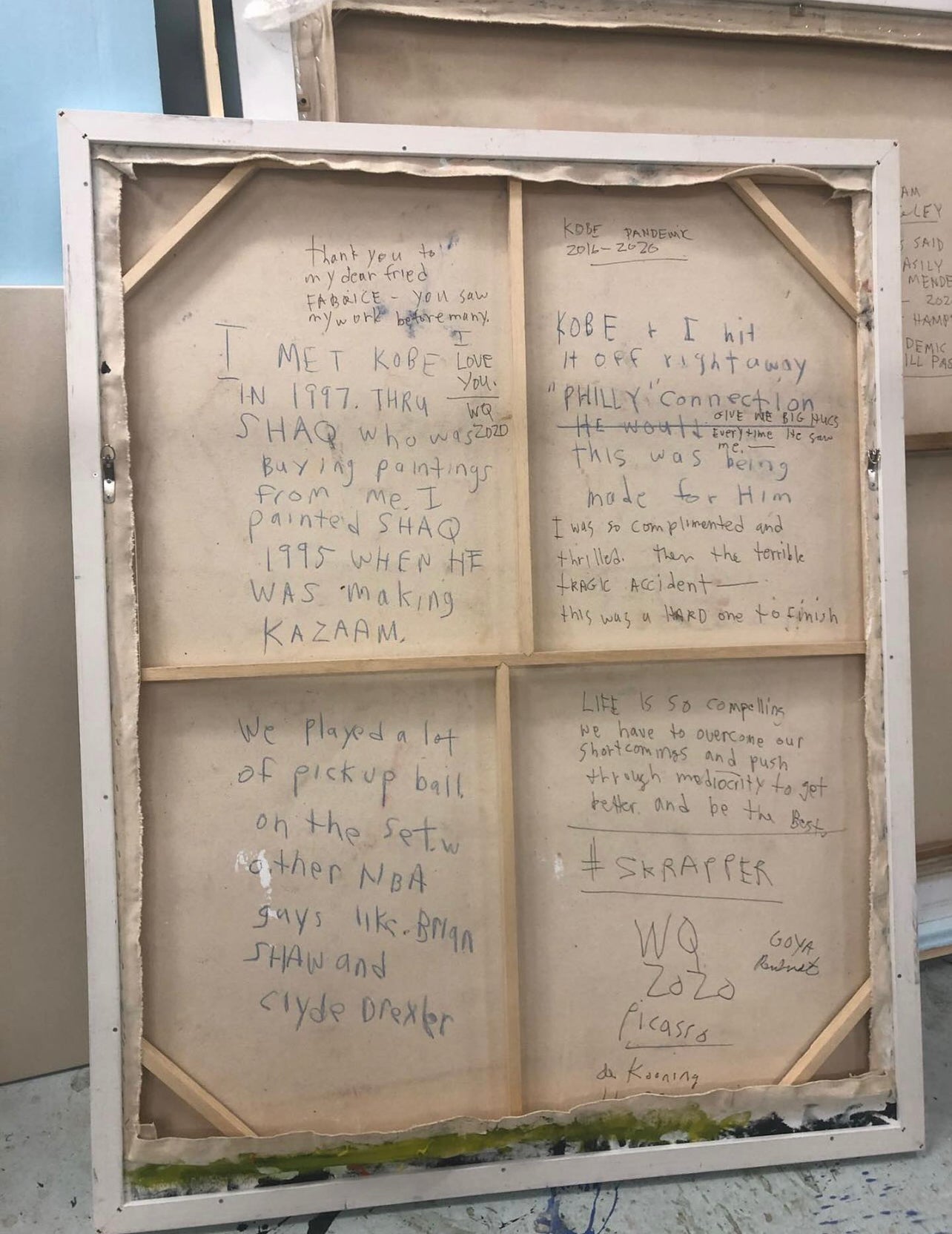 Kobe met Quigley while shooting an Adidas commercial in 1996 outside the artist's Brewery Arts studio in downtown LA. Bryant had not played a game in the NBA yet. Both from Philadelphia they hit it off and shot baskets daily for 4 days. In 1997 the future NBA legend bought an 8ft painting Quigley made of Bryant winning the dunk contest.