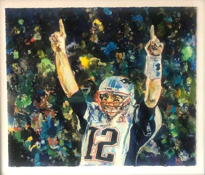 ORIGINAL 7 X 5 FT portrait of Tom Brady was painted in 2017 a week before Super Bowl LI(51) and sold to a private collector in 2018. It’s now valued at $500,000. The New England Patriots won the game against Atlanta coming back from 28-3 deficit. Tom Brady won the MVP.